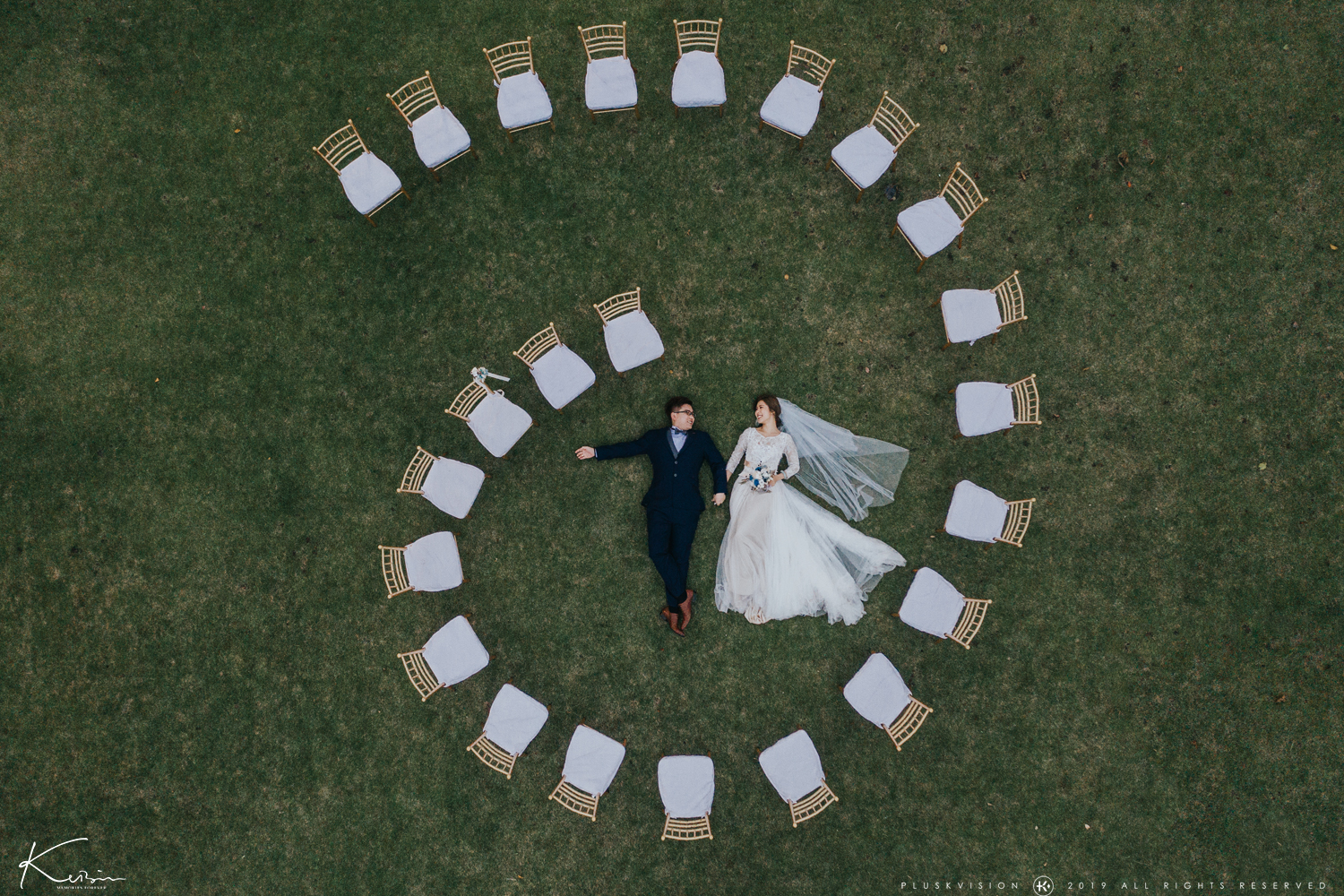 下面的婚禮婚紗照片是用空拍機如何為新人們提供獨特的視角的一個例子。